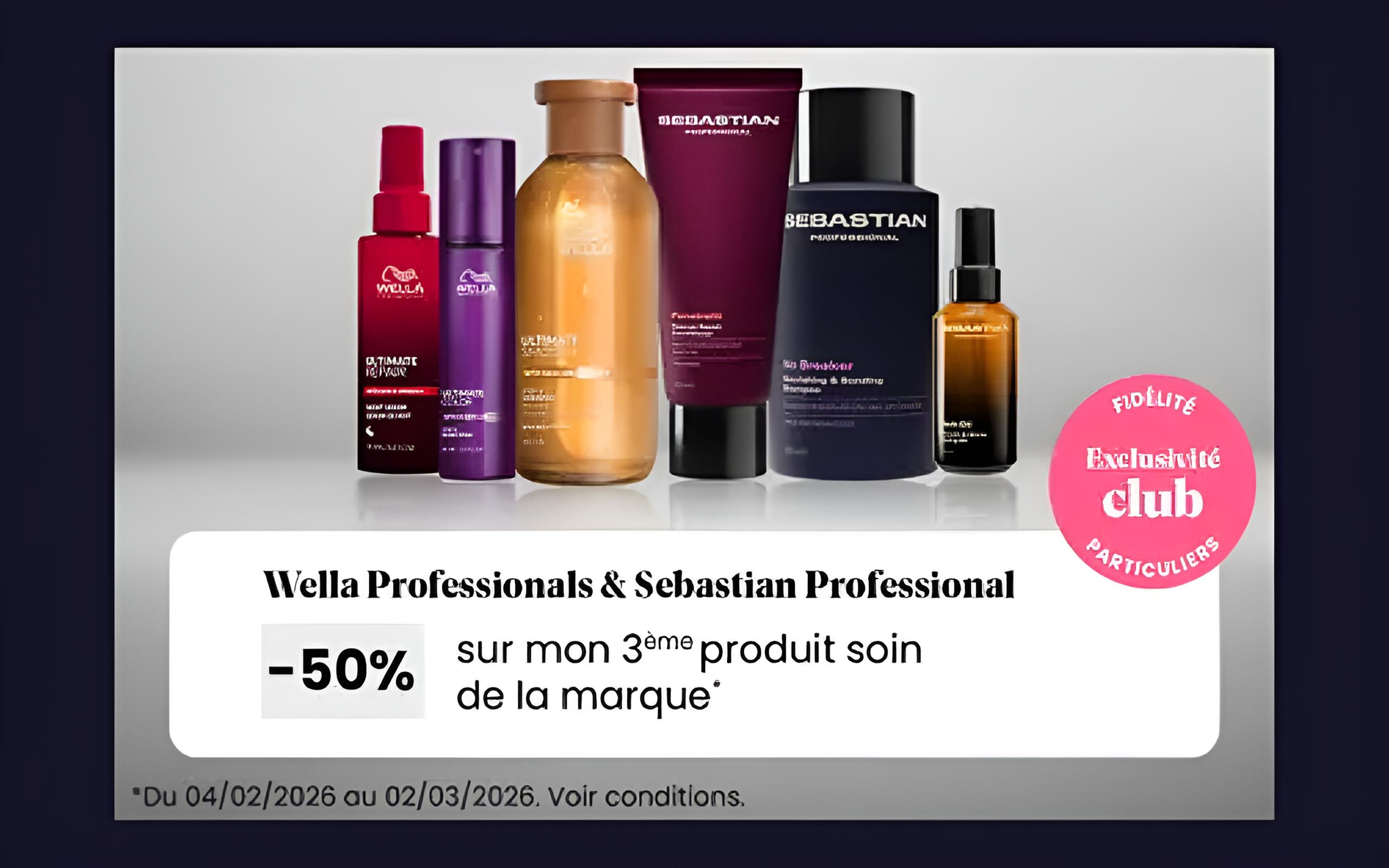 -50% sur mon 3ème produit soin* des marques Wella Professional & Sebastian Professional*